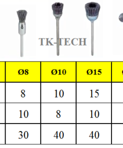– Chổi xoay để làm sạch này Được bện từ các sợi thép nhỏ, mỗi sợi có dạng gợn sóng và pha một số nguyên tố khác để tăng độ cứng và đàn hồi. Khi sử dụng lắp vào máy khoan hoặc máy đa năng, với chuyển động tròn nhanh sẽ đánh gỉ nhanh hơn nhiều so với Khi dùng tay.