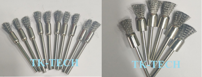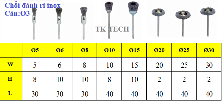 – Chổi xoay để làm sạch này Được bện từ các sợi thép nhỏ, mỗi sợi có dạng gợn sóng và pha một số nguyên tố khác để tăng độ cứng và đàn hồi. Khi sử dụng lắp vào máy khoan hoặc máy đa năng, với chuyển động tròn nhanh sẽ đánh gỉ nhanh hơn nhiều so với Khi dùng tay.